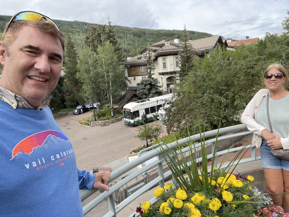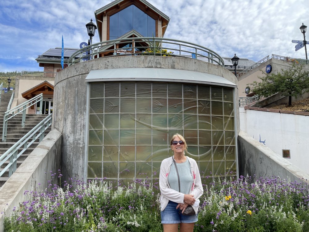 Bonnie in front of the Welcome Center Vail
