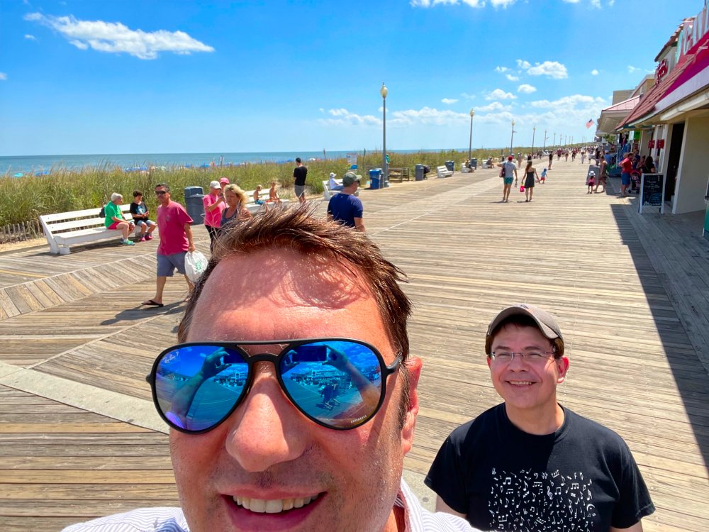Bob and Leo's first walk on the boardwalk at Rehoboth Beach