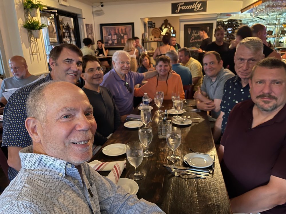Final night dinner at an Italian restaurant (Mike, Bob, Leo, Dave, Andy,